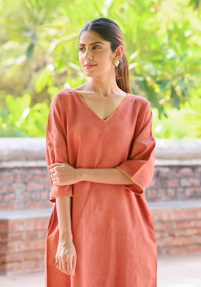 A rust co-ord set Mitti which stands for ease, intention, grounding and the quiet luxury of feeling like yourself with a very subtle embroidery enough to be felt.