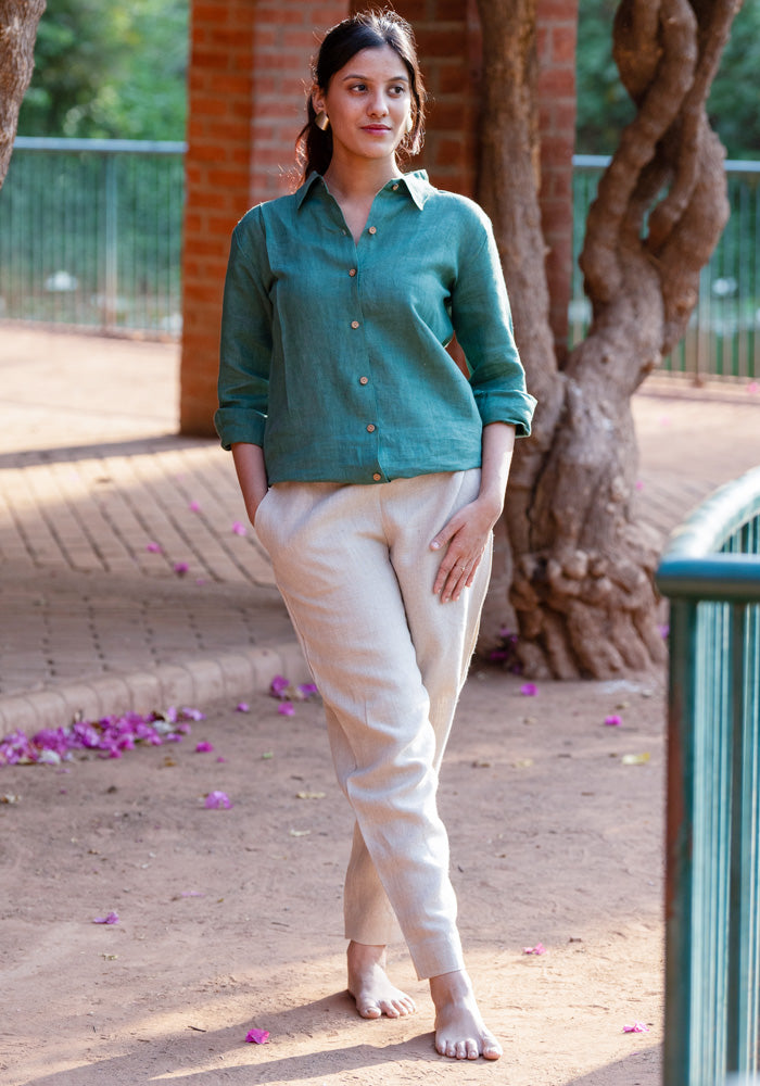 This shirt made specially made for the Color-Lover's Soul. Designed in a rich emerald green, this shirt adds a vibrant statement to your wardrobe where style meets everyday indulgence.